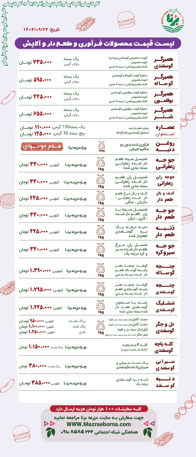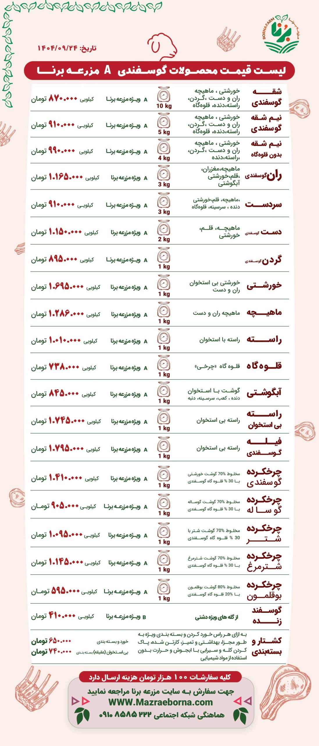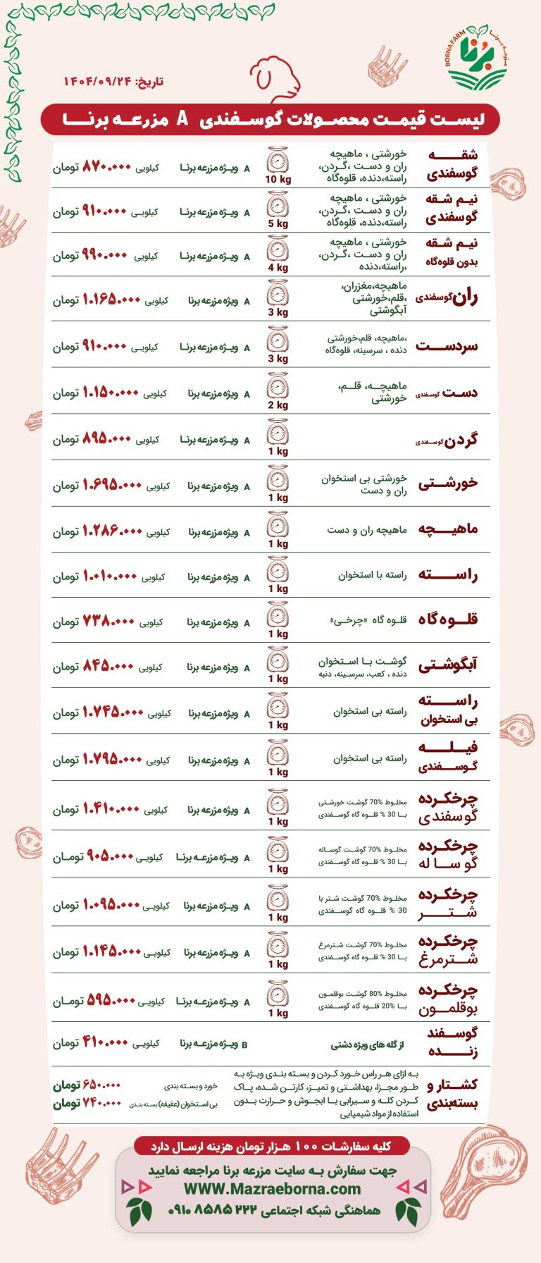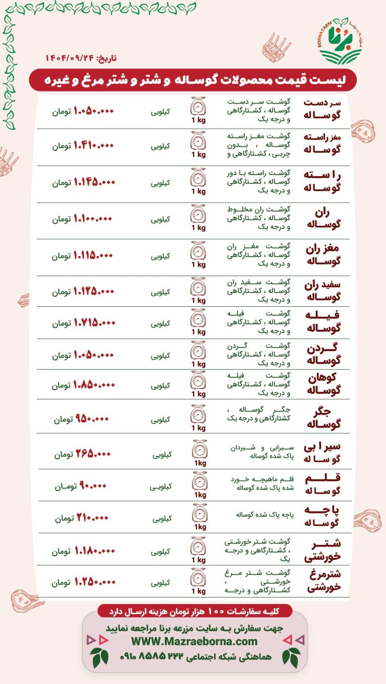 لیست قیمت محصولات گوسفندی A مزرعه برنا