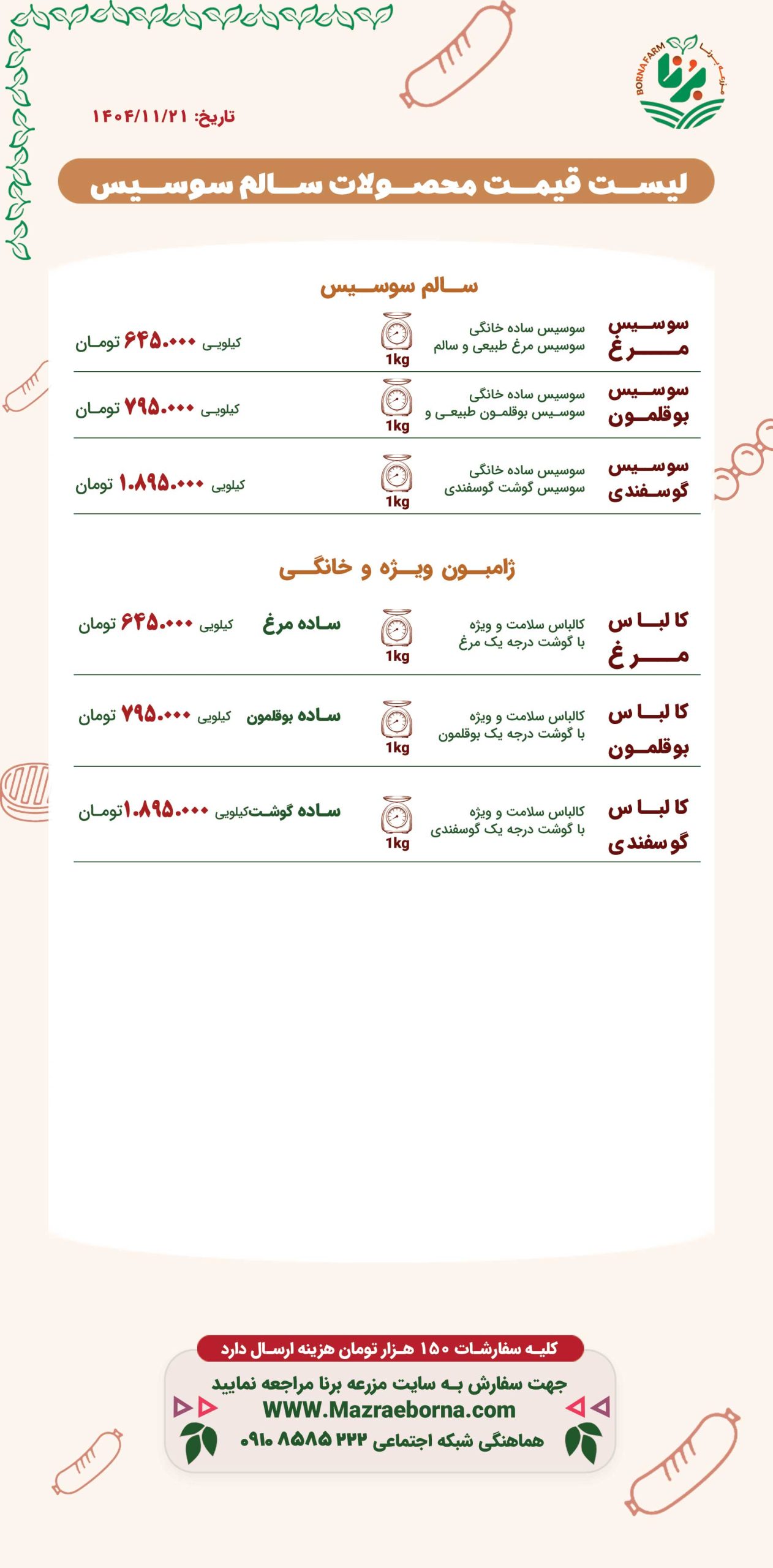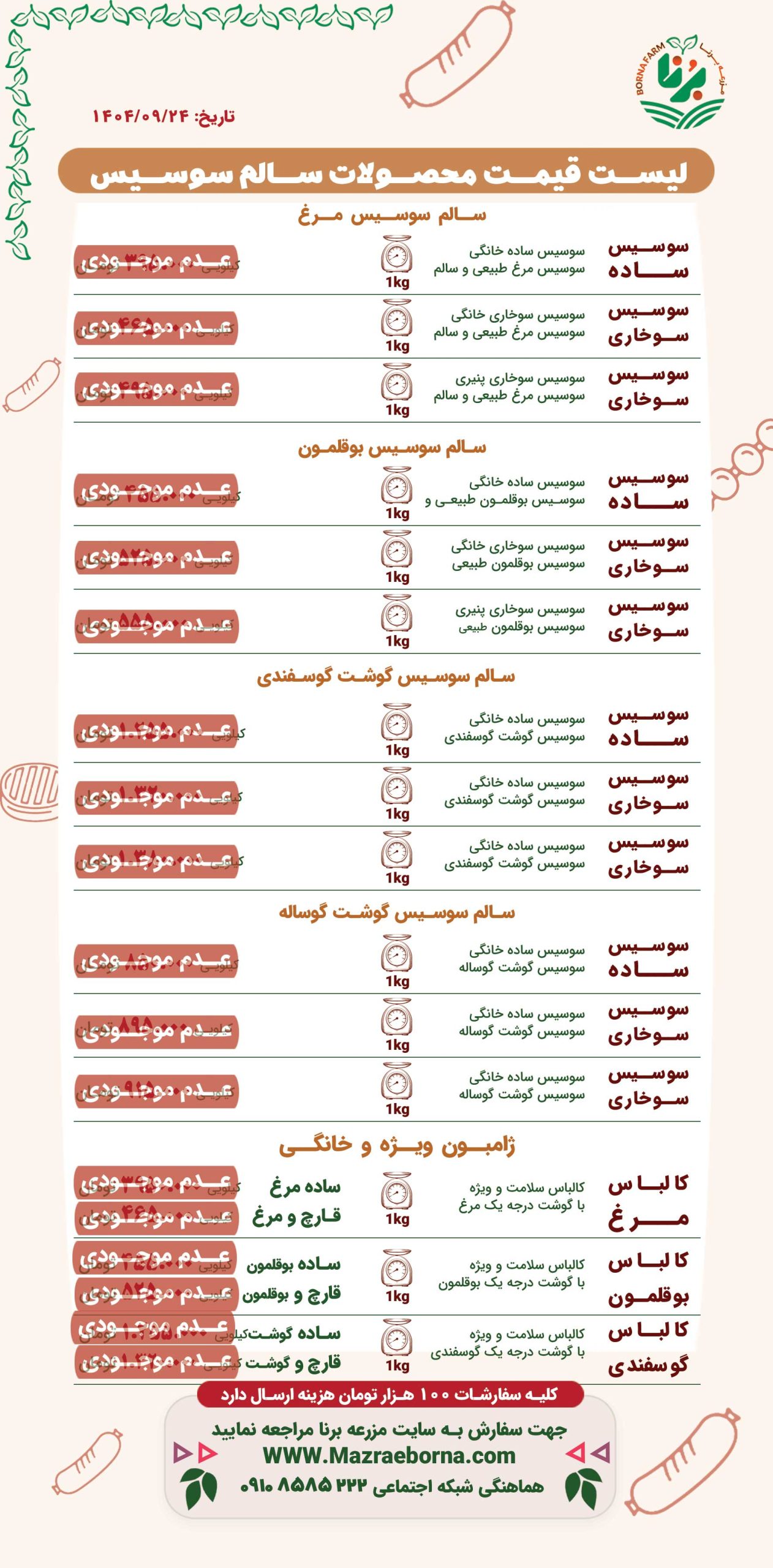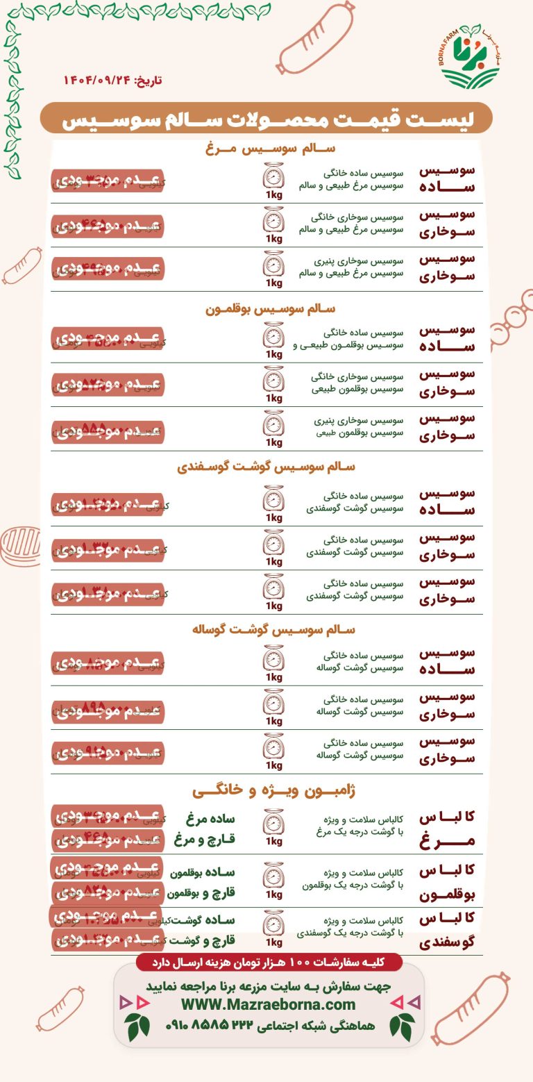 لیست قیمت محصولات سالم سوسیس