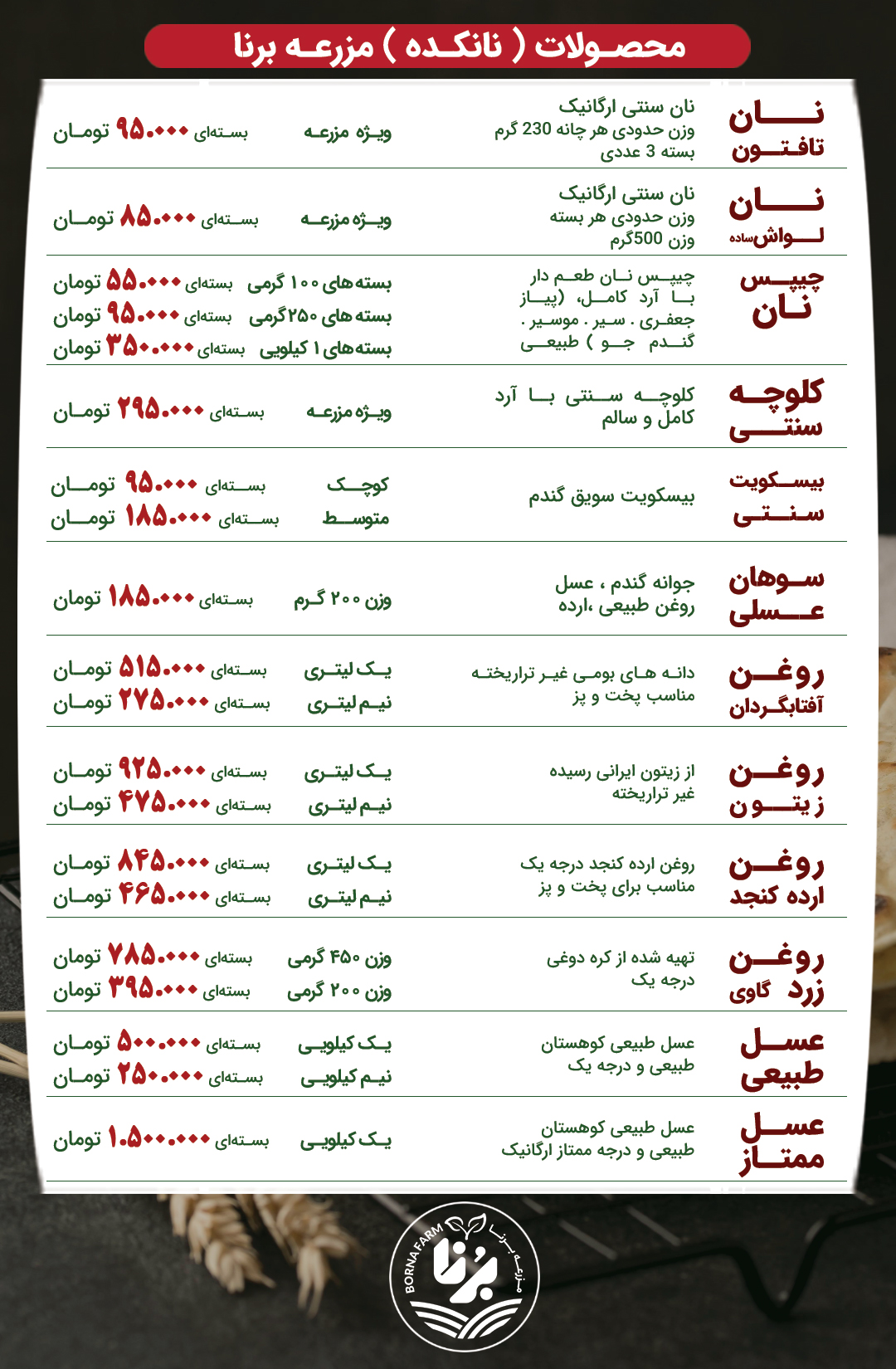 لیست قیمت محصولات نانکده